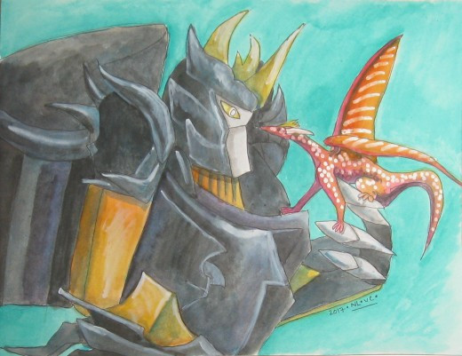 I wanted to upload this on new years but I couldn't finish it on time. U can tell I got lazy with the dragon..... Heck I didn't even know what I was doing with this!!!So this is slipstream and a weird...partialy invisible....black.....water.....flying.....devil horn....thinggymajig.....dragon