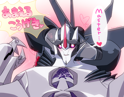 Megatron: Ah, my precious little Screamer(comes behind SS, pulling him closer to him by the waist). Soo diligent in everything you do (eyes him slowly moves hands up to SS's shoulders). In fact..why don't you put those dishes down, and put that effort into more... salacious activities.