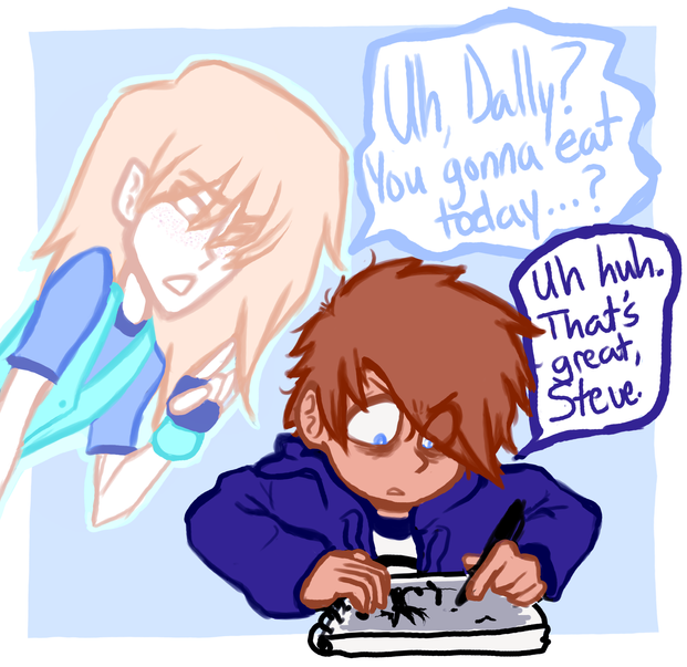 im just rambling now but um i should probably try to adapt that weird face style i briefly had in 8th grade you can see in the middle bc i love that type of face it just looks stupid on her and b/c i couldnt draw anything successfully at the time