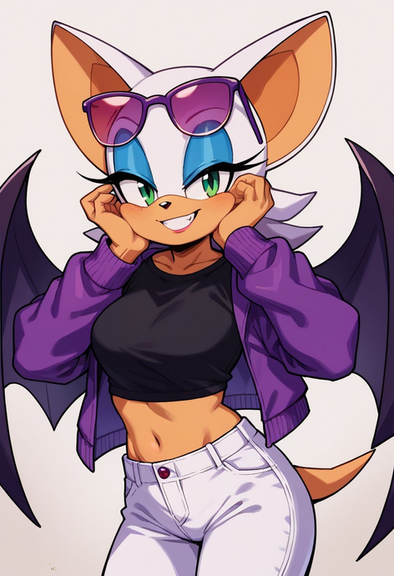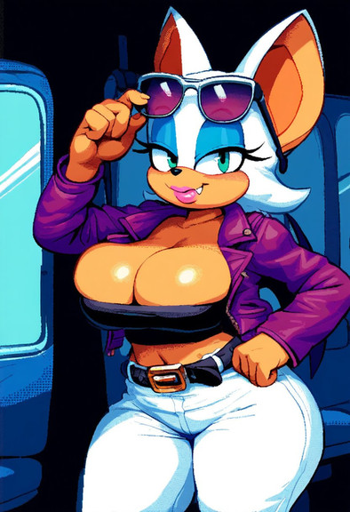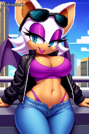#sonicthehedgehog #rougethebat #bat #pixelart #beautifulgirl #cleavage #furryanthro #furryfemale #jacket #jacketgirl #midriff #navel #pixel_art #rouge_the_bat #sonic_the_hedgehog #soniccharacters #sonicgirls #sunglasses #whitepants #rougethebatsonic #sonic_girls #sunglasses_on_head #ai_generated_art #mobiansai #mobians_ai