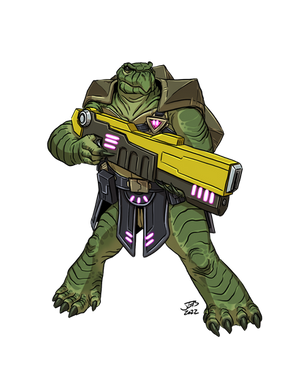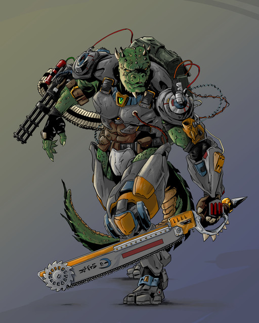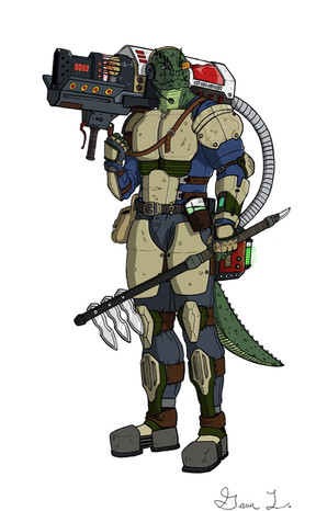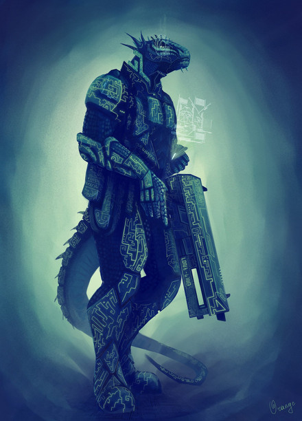 #characterdesign #digitalart #gun #fanart #warrior #scifi #monster #lizardfolk #saurian #sciencefiction #spelljammer #starfinder #vesk