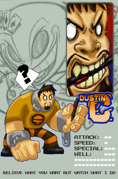 So like a number of cartoonists I had already conceptualised a fighting game with my own characters (details of which are only known to my scrap watchers so far) so I already have movesets for myself but while my primary weapon is usually the mallet, I felt that for the outlandish theme of these IDs I would exhibit the "2nd Special Ability," which is totally relevant, I swear: [link]