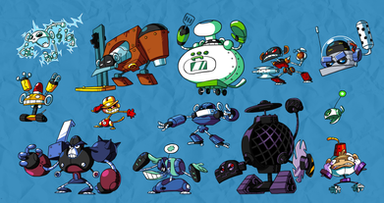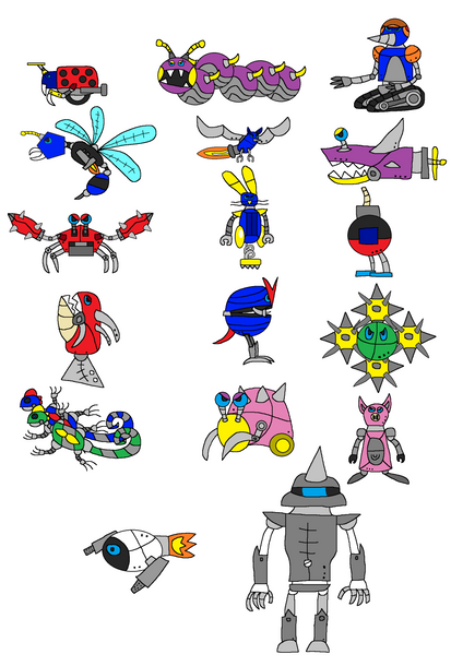 I've grouped the last of the old robot drawings together, some of them just weren't of a high enough quality to publish separately, though all of the designs themselves are current.And none of these are character 'bots, just common minions.