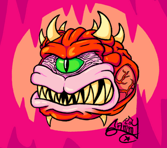 Hoagie traded me a copy of Loom on Steam for a picture. Who knows why, but for his picture he chose the cacodemon from Doom. Perhaps it was because the two games rhyme. Whatever the case, I have drawn this horrible love child of a Madball and the vegetable Gremlin from Gremlins 2. I've spent afternoons worse ways.