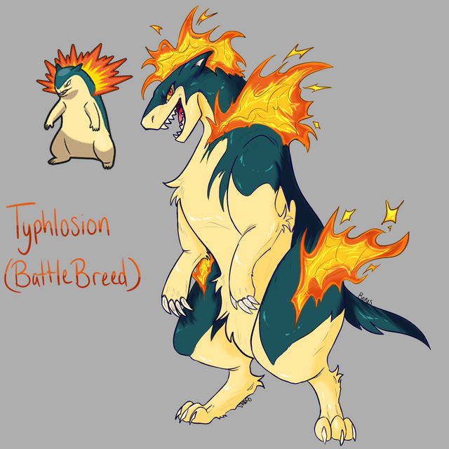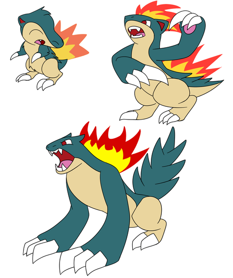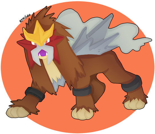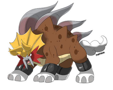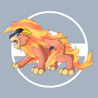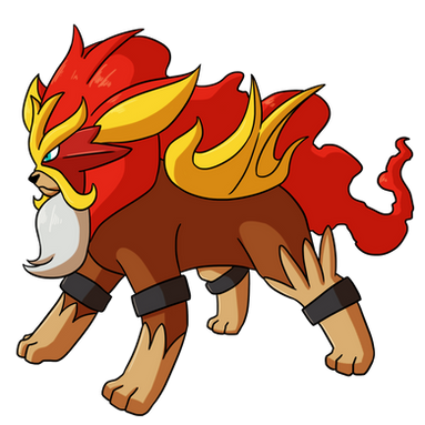 Legend states that a Pokémon that died in a blaze came back to life to torment the humans that caused its death as this Entei. It melts metals with its hot flames and adds them to its armor. It is said to brand its prey with hot metal to mark them as its target, then harry them for days until they die of exhaustion.
