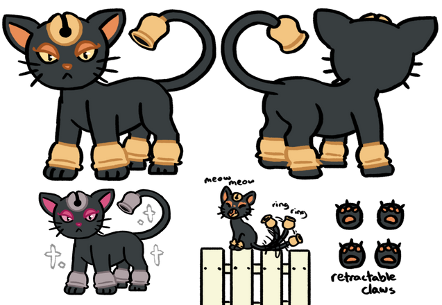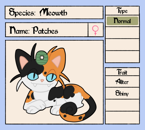 Meowth from the Block are docile, friendly, and playful. They are considered lucky and thought to bring prosperity and happiness. They are known to move with an unusual hopping gait.