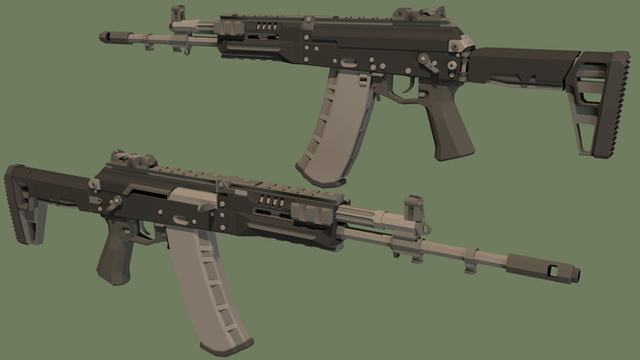 Ported AK 103, AK 74 and AKM (through a Romenian rip-off). Now the only thing missing is the true AK 47.Model from Ravaged. Submitted by Valdos @ p3dm.ru. Port and rig by me. Bump map generated using Paint.NET and nVidea's tools.