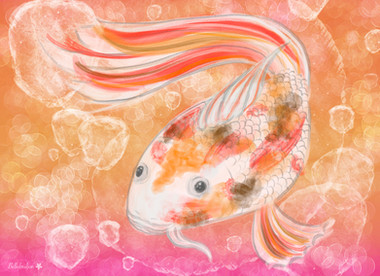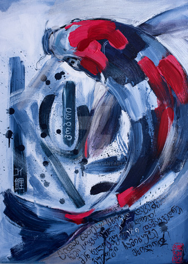 I just took a look at real carp and tried to keep lineout in a geometric shape and then took a brush with watercolor and went crazy.