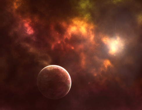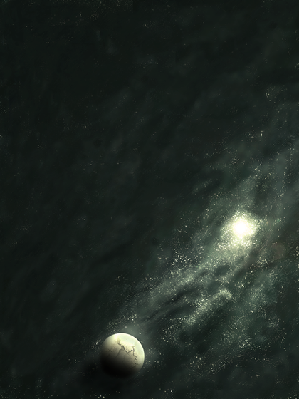That's easy. Get a nice landscape, render one up on terragen or something and place it in the bottom. Add some clouds or like.. a ship launching into space off the land. Or if you wanna just keep painting add to the nebulae. I love the comets, if I were you I'd take on the inspiration of them being ships, and put one closer up to the point where you can see some details on it, maybe in the distance make one being shot down by an enemy ship.