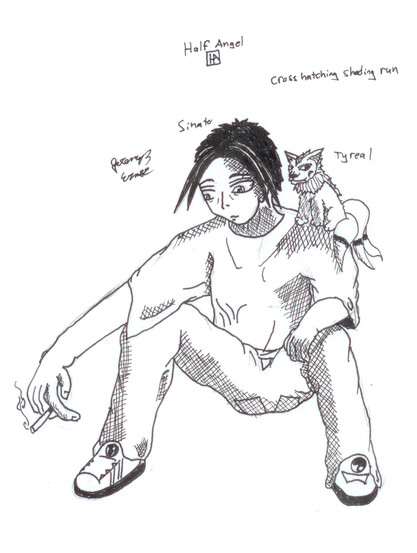 just a redesign of a character from my manga half angelsketched in pencil gone over in pen cleaned up then shading with a bit of pencil