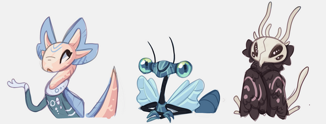 So the steampunk animal concepts for my team game had been scrapped because too many other teams for our event have chosen animal themes. We had to redo some character concepts and switched to aliens. I wanted to share the ones I created because I thought they were an interesting little cast of characters :>