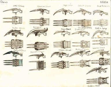 It just hit me that a battle claw design is very close in resemblance to Freddy Krueger's bladed glove. 0_0