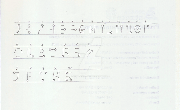 This is an alphabet I'm very proud of. A year ago, I made the Alpha Omega Code for a new language that humanity might one day read, write, and speak thousands of years from now if we are living on other worlds. But, like the Terran Codex, please don't take this. Please!sincerely, ProjectWarSword