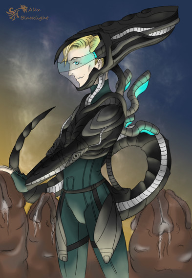 Beautiful illustration of work, definitely, Syn, the character of SymbioteMaskLover , is of the best of dark science-fiction.