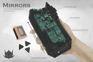 These are the computers of Morning Artifice. What appears to be a mere hunk of machined plastic and silicon conceals an idea which would eventually permeate every home, every room, every thing, until finally it would be realized during the ascension of man, and our creation.