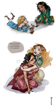 Darkstar!!! Wow, your drawing is fantastic, epic! Arianne and Myrcella are wonderful! And poor Arys, looks so sad/anxious.
