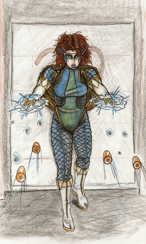 She was sposta have a corset on, but she's supposed to have leggings. I guess it's some kind of weird corset body-suit. It would only look good in this pose. It would have taken me a million times longer to shade if I'd shaded all the cellulite on those damned thighs.