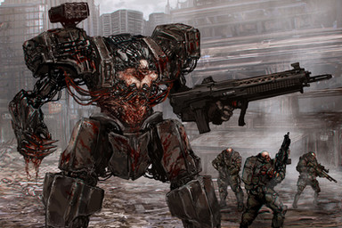 Very dark, grim, and stylishly sinister. Reminds me of the T-600 endoskeletons from Terminator 4: Salvation.