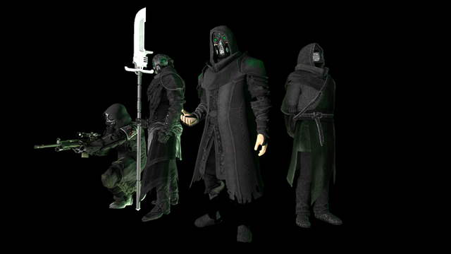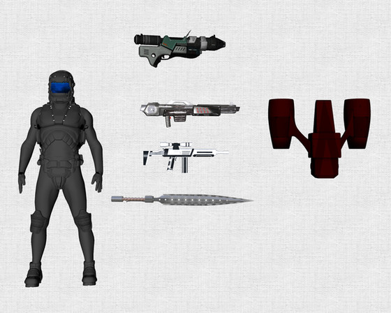 Noir: I kept going over this character and kept getting stumped. The idea of 'Noir' would have been lost rather quickly on the general populace of Reichworld what with the totalitarian views of the leadership. But I didn't want to lose that feel either. So when I started throwing things together I just kept coming back to this guy who is one part V for Vendetta, one part Wyatt Earp, and one part The Shadow and it just worked for me. Here's a guy who, no matter if people get it or not, goes by a name that most wont get. Prompting them to think and investigate on their own. This in turn could start to wake people up as they find books that should have been burned, videos that have been banned, etc. But why arm him with guns? Because just like V he's no fool. He has ideals he holds dear but he knows that he can't play by those rules when dealing with the higher ups in the government. So his settings for stun and kill sit precariously close to one another.....