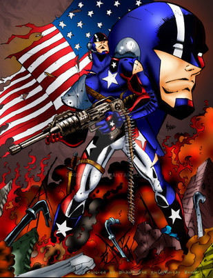 Soul Shard: This is a remake of Soul Shield who had several pictures that were bio tech/Cyberforce looking anyways. So I went a different direction with this one. I wanted to at least do one hero who had been horribly warped by the Reich and managed to sneak away. And since I didn't get permission for the other one I wanted to do I went nuts on this hero. He was probably captured and tested by Herr Father Figure at an early age and used for their super soldier projects. Deemed a failure he was scheduled for 'recycling' when the other heroes broke in, kicked butt and took names. What you see isn't a costume but what they warped this poor soul into. He wields a bio-cannon on his right arm that allows him to project his own inner energy as he sees fit.