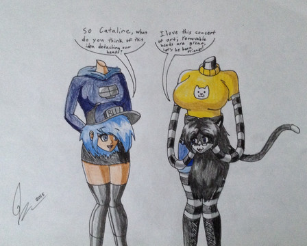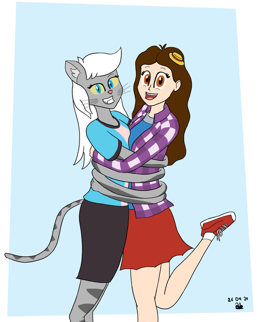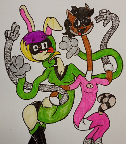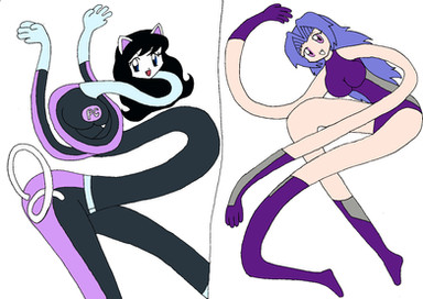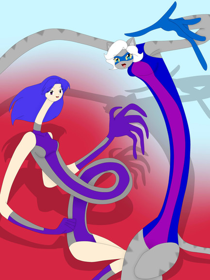 A commission forEver wondered how stretch gals greet each other? They greet by making fast maneuvers with their arms without getting their arms tied up. Here we have Cat and The Stretcher ending their strange, yet amazing handshake with a high-five. That's one way to get yourself a muscle sore the next morning!