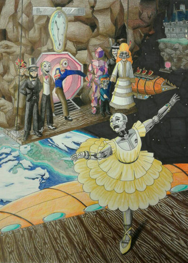 Today I felt like searching through my old portfolio from my high school days and found this piece. Sorry for the crappy folds, I had no other way of fixing its folds.If I recalled correctly, this was my very first attempt at drawing backgrounds. I was an enthusiast in industrial or geometric backgrounds since nature seems too simple...I take that back, both natural an geometric backgrounds do have their fair share of complex designs.