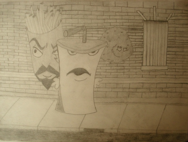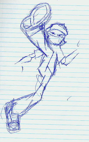 The upper body is pretty cool, especialy the head. In the lower part I can't really recognize anything. Good drawing.