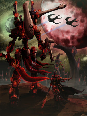 Testing my artistic wings, to see if they will carry me before I get back into finishing everything else that is in progress.Dark Eldar riding a Reaver Jetbike in Commoragh, the Dark City.