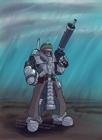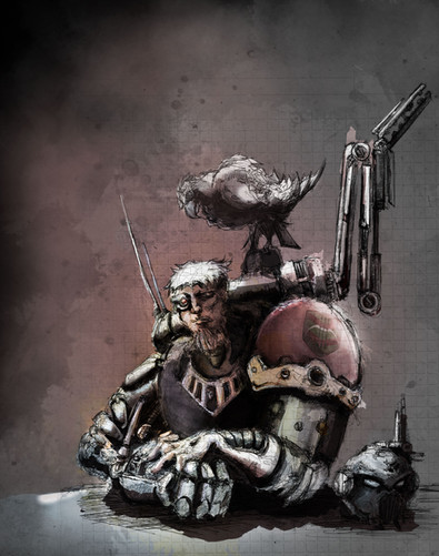 So I was like browsing the internet for history to read, as I'm currently studying for my finals in 3 weeks, and happened upon a drawthread in /tg/.One particular request caught my eye, and that was the Engineer as an Adeptus Mechanicus techpriest, wielding two of the new weapons for him. (A mechanical hand and a snazzy steampunk shotgun)