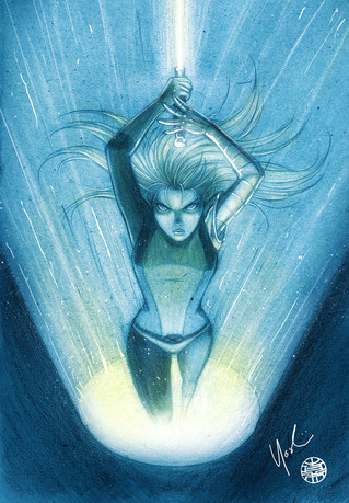 Very pretty. Really captures the feminine beauty she had in the old cartoon. And I really like her hand spinning the staff.