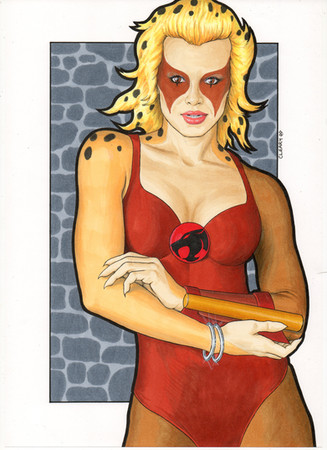 The face (particularly the eyes and lips) reminds me of Michelle Pfeiffer. Who now I think about it would have made a lovely live-action Cheetara back in the 80's (and she did get well known playing another cat lady) Beautiful drawing. I love original Cheetara.
