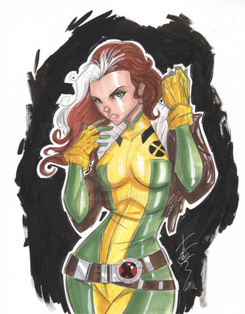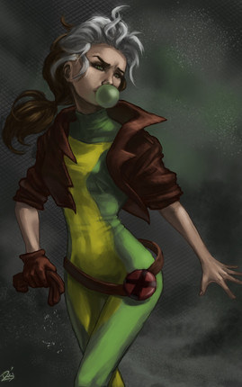 Very nice work, it looks, to me, that Rogue is blowing a kiss before she punches the viewer out.