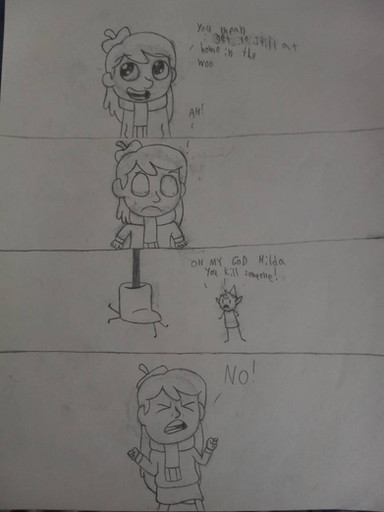 Hilda is giving that marra, a little treat. After that bike incident.Hilda and marra are owned by Luke Pearson/Silvergate Media/Flying eye books/Nobrow Press/Netflix