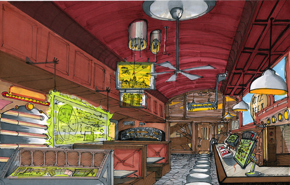 The drawing is so expressive (that's a part of the "art" that you have under control!!), and I really love the "fan" perspective of the background!!! But there are a few little issues with anatomiy. Even i a cartoonish artwork like these one, there are some "rules" that will improve the quility of the final result. Take care with the construction of the shoulders and hips, 'cos a "broken" appearence makes the figure seem with funny bone shapes.