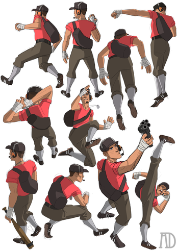i like how he looks as a character (i love how all the tf2 characters look in general but i enjoy Scouts second most, heavy being first because i love his big bear paws! <3 XDDD )