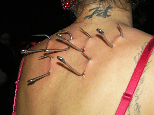 that's an insane image. i take it that the pink marks across his back are to make sure the hooks get put in the right places? i wonder how much vodka you have to drink to do that? the downside to this image is that, while it's really powerful it's also really large and is kind of hard to full view. but it might lose detail if you shrunk it any, so i understand why you left it large. is the guy in the background with the camera you?