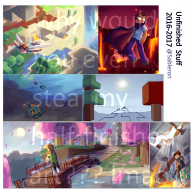 i check deviantart from time to time but i don't really reply to stuff much anymore. i've been super busy with uni and personal stuff that it's been hard to even have time to look at my tablet the past 9 months...also had to take math during the summer so the amount of drawing time has definitely been low haha. but idk maybe some people out there are still actively following me here! i do appreciate that. if you're still actively interested in my stuff, i post nearly exclusively on my discord nowadays ( discord.gg/MPf89n6) and sometimes on instagram (@ Proxentauri). anyway i guess i should say something about the piece? it took me like 10 hours and 9 minutes which i'm fairly sure is a new record; i don't think it's ever taken me that long to draw anything before! i can't say i'm particularly happy with how the overworld came out, but i do like the nether background and i think i did a good job representing everything new that was introduced in the update. to list: