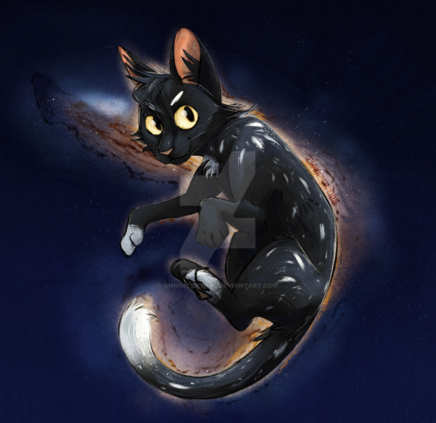 Heres my baby Yoink~ A new character/species. Yoink is only is' name, but not the actual name of the species.Yoinks species has very little known about them but are commonly called Nova Felids. Nova felids tend to take many shapes, but received their name do to the fact they are usually seen looking to be about the size of a house cat and sharing some of the characteristics. They arent actually solid, but instead they are constructed of a mysterious gas able to keep a structure until touched. When touched, the gas will part in said area revealing that the gas itself is actually a multi colored (like a super nova or a galaxy) substance until settled. Nova felids go unnoticed with ease. They will occasionally be seen by a human in the corner said human eye, but unless immense focus was given, and they actually knew what they were supposed to be focusing on, they would usually turn away believing their mind plays tricks with shadows.