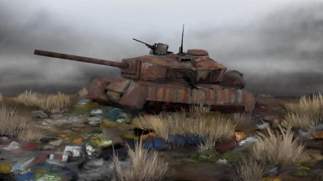 This is really cool but a bit of advice is to make what the piece is focused on stand out a bit more because now it's a bit dark and hard to see the tank and troops above, otherwise this is so great.