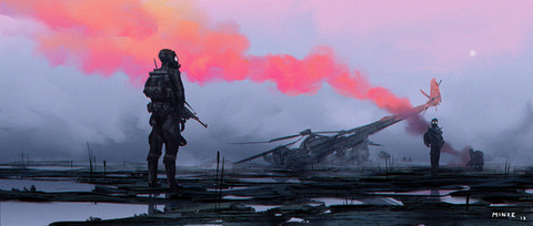 This is strangely cute. I almost picture the dragonfly as just being a robotic dragonfly, not a threat, but the battle-hardened soldier has never seen as peaceful creature, so he thinks he has been "spotted by the enemy".