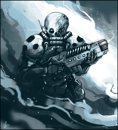 An exorcist and a gun. I couldn't possibly fathom what could POSSIBLY go wrong with that. I also love how his head is some sort of aquarium, like the brother above me just said, it's really intriguing. Great work, as usual c:
