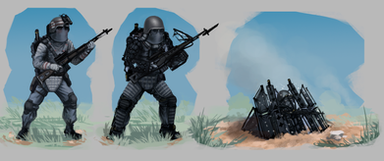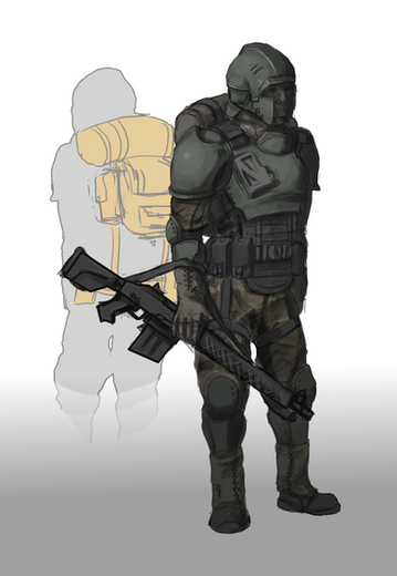 Not sure about the rifle slong across his back. Just seems a bit large and might make fighting unwieldy but everything else looks awesome.