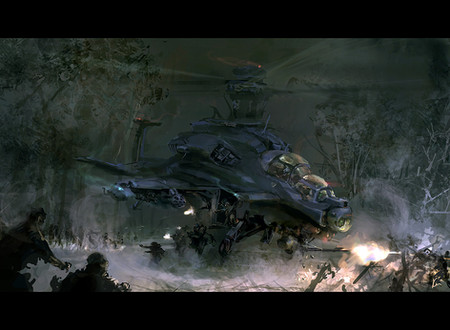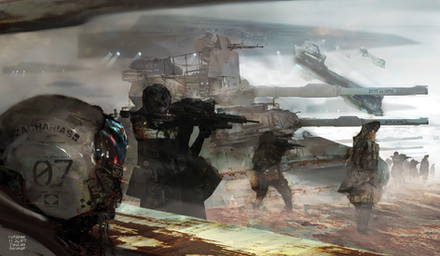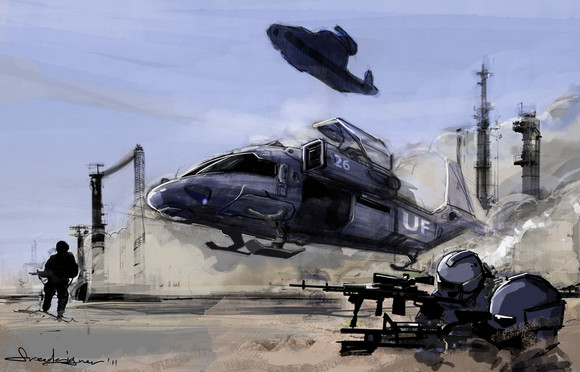 These designs are awesome and the rendering style is great, but the composition is very boxy and flat.Β The air vehicle and sea vehicle both feel like they are at the same distance in space from a rendering standpoint (although, the scale shows that they aren't).Β You have a lot of talent and potential.