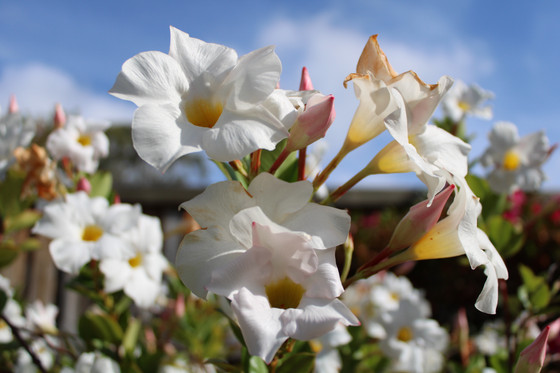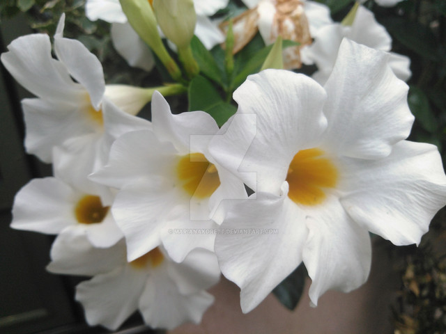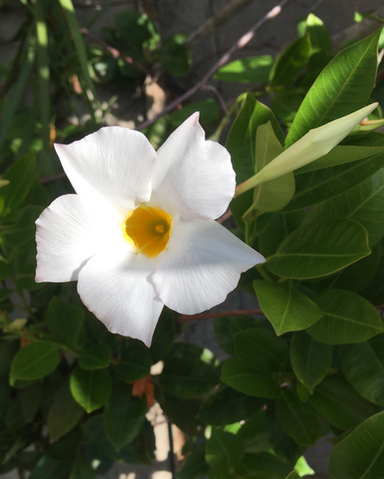 A close-up shot of a White Mandevilla flower (Mandevilla Sanderi)Related content