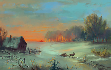 #3d #cart #church #horse #low #mud #snow #spring #village #water #lowpoly #march #russia