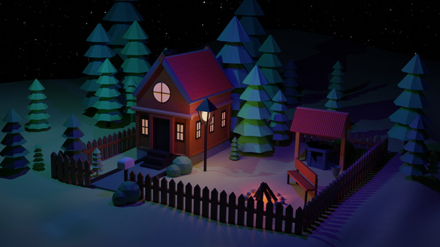 #3dmax #low #lowpoly #poly #forest #snow #village #winter #woods