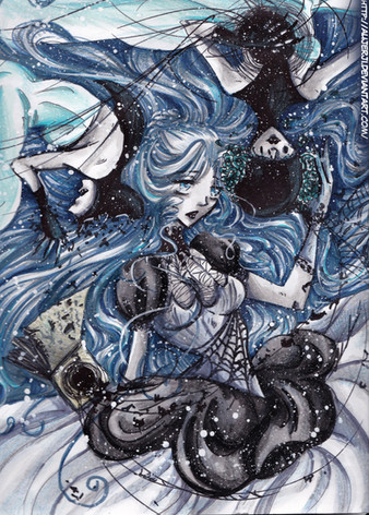 Ahh, thank you, I'm so glad you like it! I really like drawing like that, it's quite calming, though it definitely takes a while ^^ I actually cross-hatched the whole black part too, before I decided it would probably be best to colour it all black
