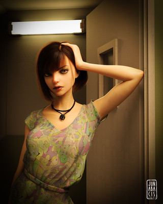 I originally made this picture on the suggestion of a DeviantArt member, the pose and setting is a tribute to a photo of Audrey Hepburn here which was a promo shot for the film "Sabrina"Decided to use a white dress this time, always nice to mix things up a bit.