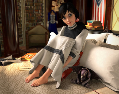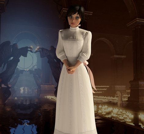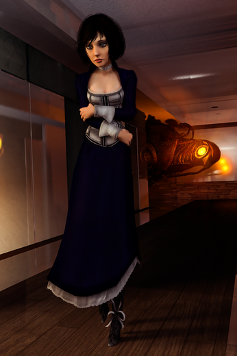 Elizabeth does make an appearance in Rapture (admittedly not in this attire) but I wanted to keep to the picture of Audrey and have a similar background and so Booker's office in rapture was the best place to do it.