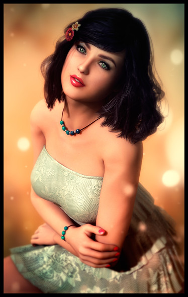 I originally made this picture on the suggestion of a DeviantArt member, the pose and setting is a tribute to a photo of Audrey Hepburn here which was a promo shot for the film "Sabrina"Decided to use a white dress this time, always nice to mix things up a bit.